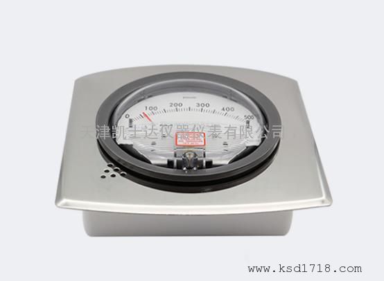 天津凯士达公司推荐客户使用差压表专用安装盒,不锈钢材质,由不锈钢模具冲压成型,专门为配合差压表的安装而定制,安装时先将底盒预埋入彩钢板墙内,再将不锈钢套环套于差压表上,将表放置在盒内,反面再拧上负压端的不锈钢成品固定件即可,做到完全的平整与美观。