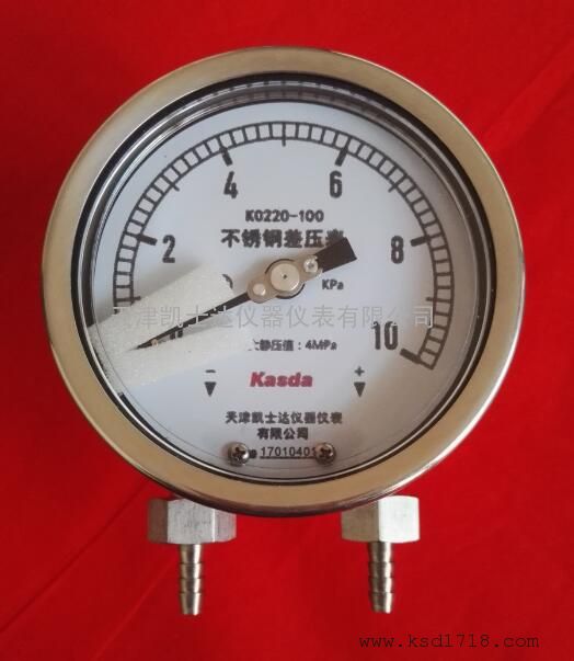 天津凯士达系列产品K0220不锈钢单针差压表0-100kPa,6.3MPa,DN15,M20*1.5,宝塔嘴接口,不锈钢差压表,耐震不锈钢压差表,适用于测量同一压力源或不同压力源的气体、液体或蒸汽等介质的压力差,并可用于对感压元件无腐蚀作用的腐蚀性介质。